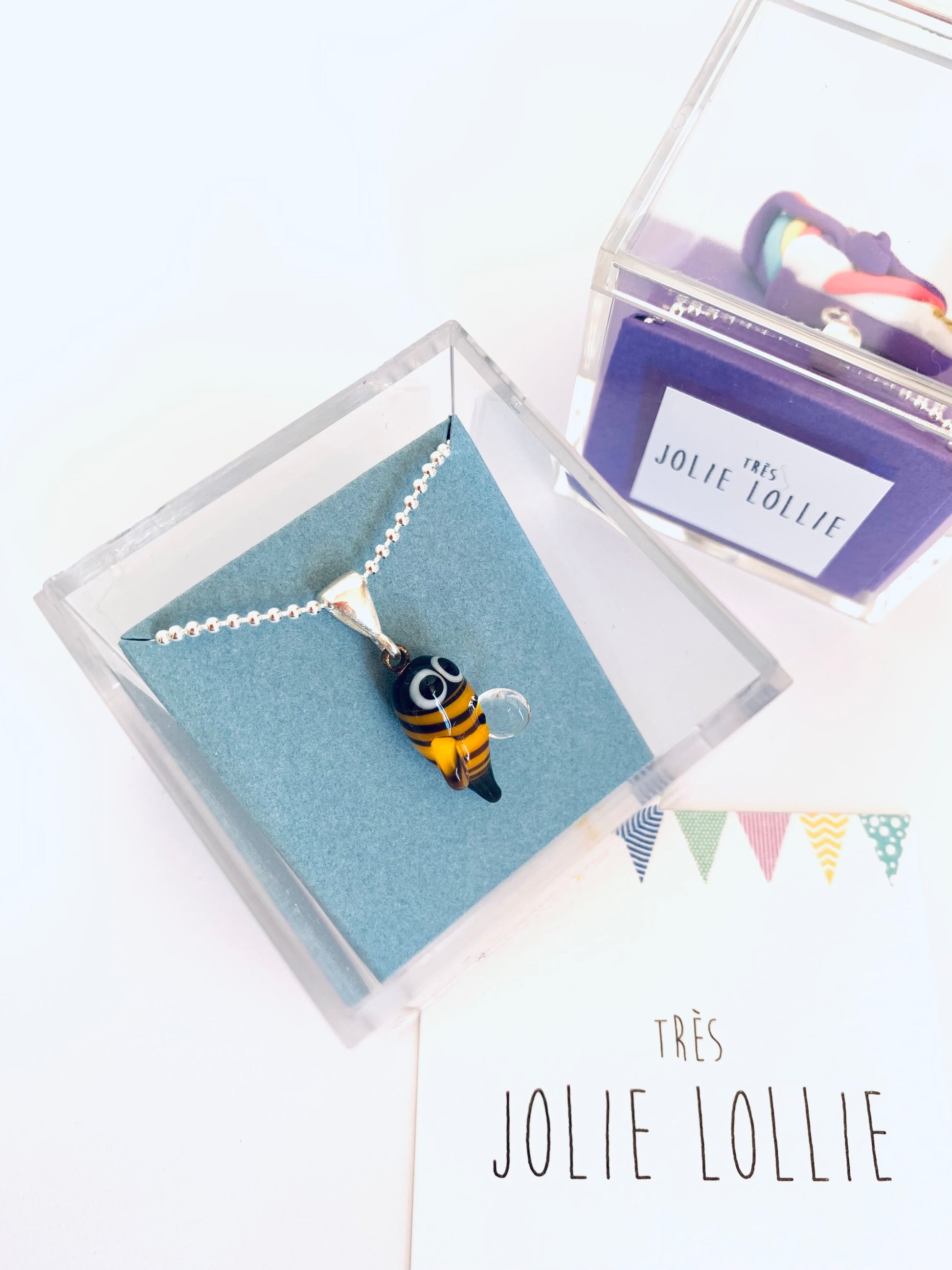 50cm uzunluğunda, 925 ayar gümüş top zincir ucunda el yapımı sarı siyah arı kolye.