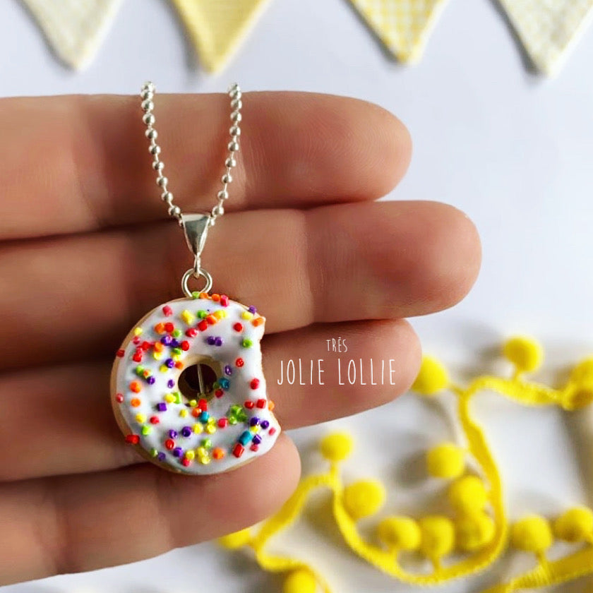 Donut Gümüş Kolye - Beyaz Sprinkle