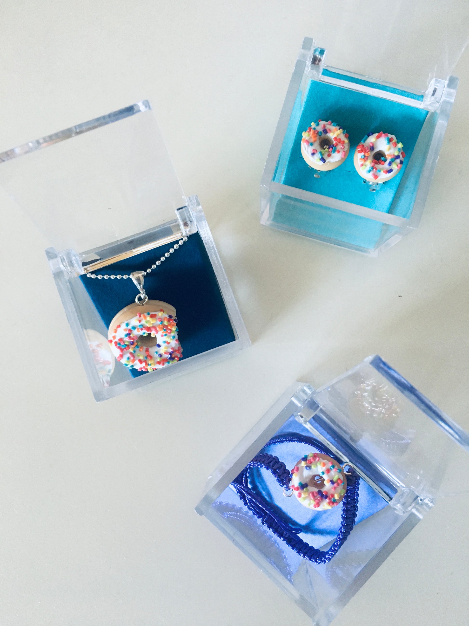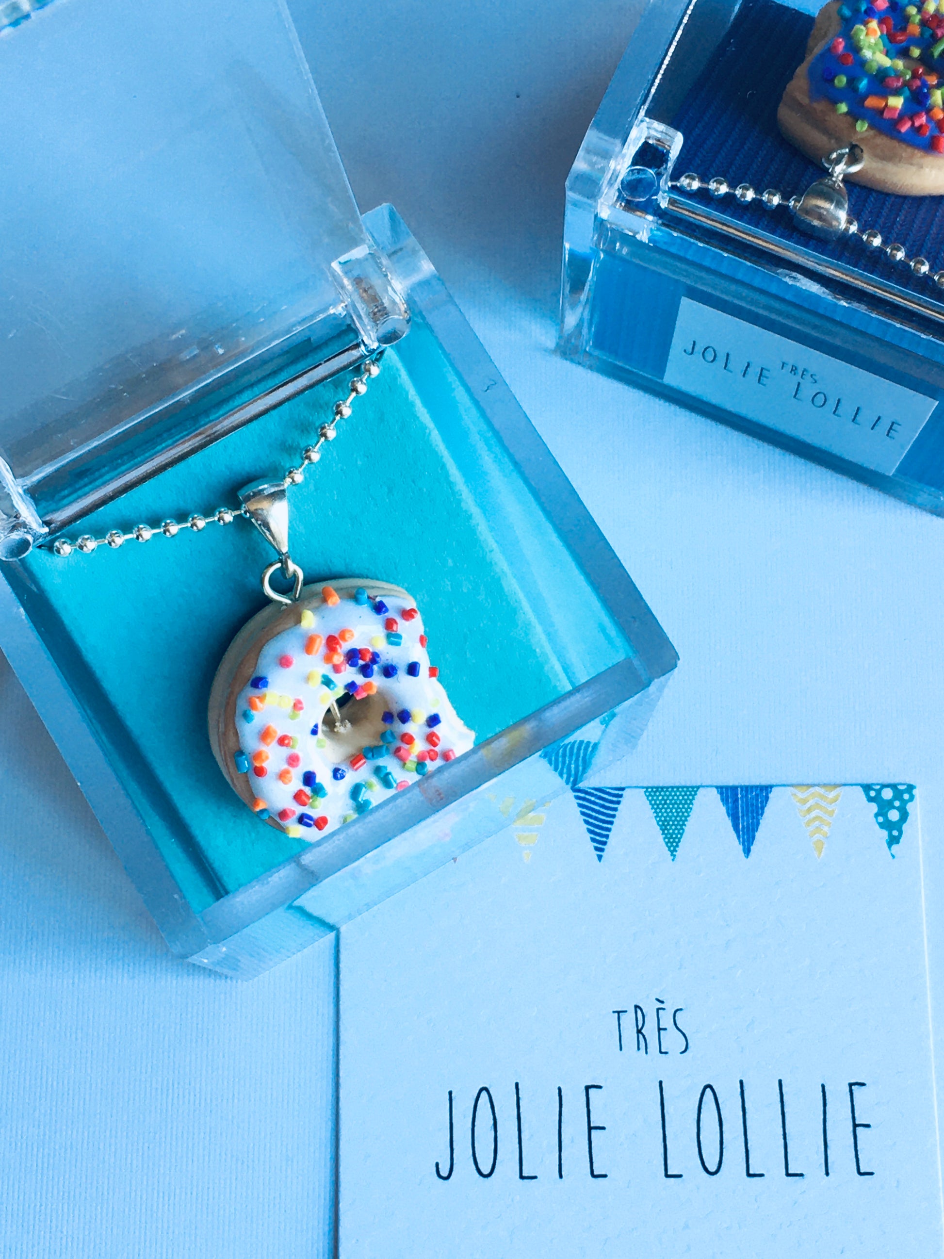 Handmade polymer donut shaped pendant on a 50cm. silver chain.