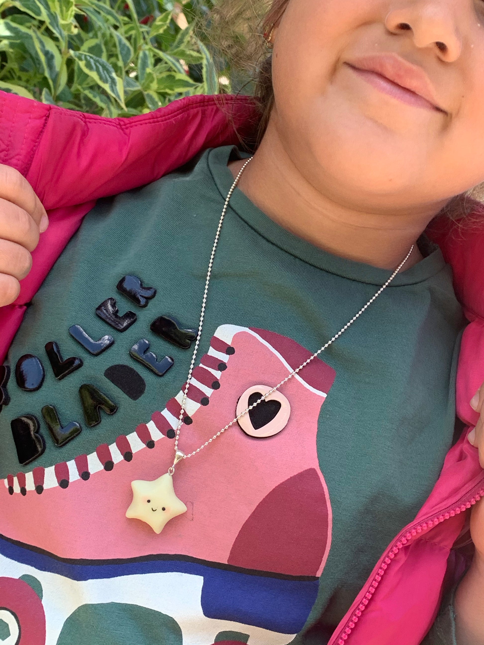 El yapımı gece parlayan polimer süslü, 925 ayar gümüş zincirli kolye. Handmade glow in the dark polymer pendant on a 50cm. silver chain.