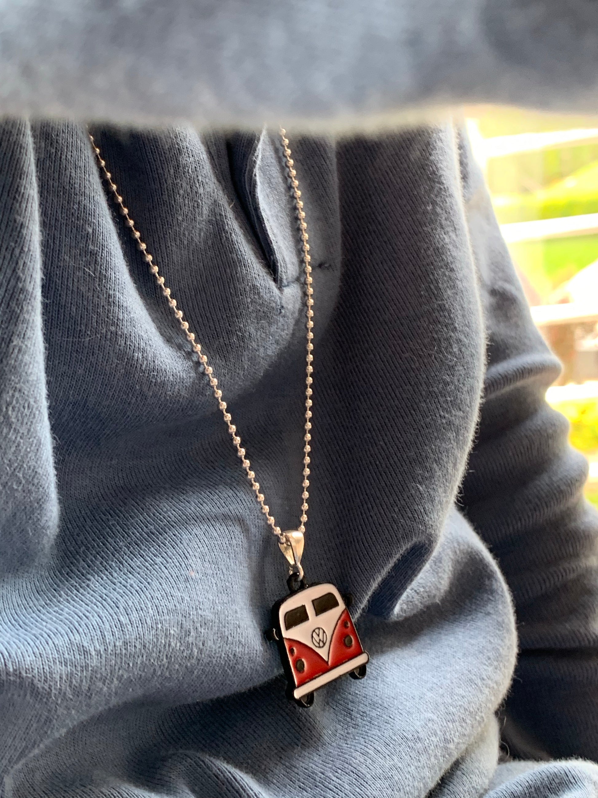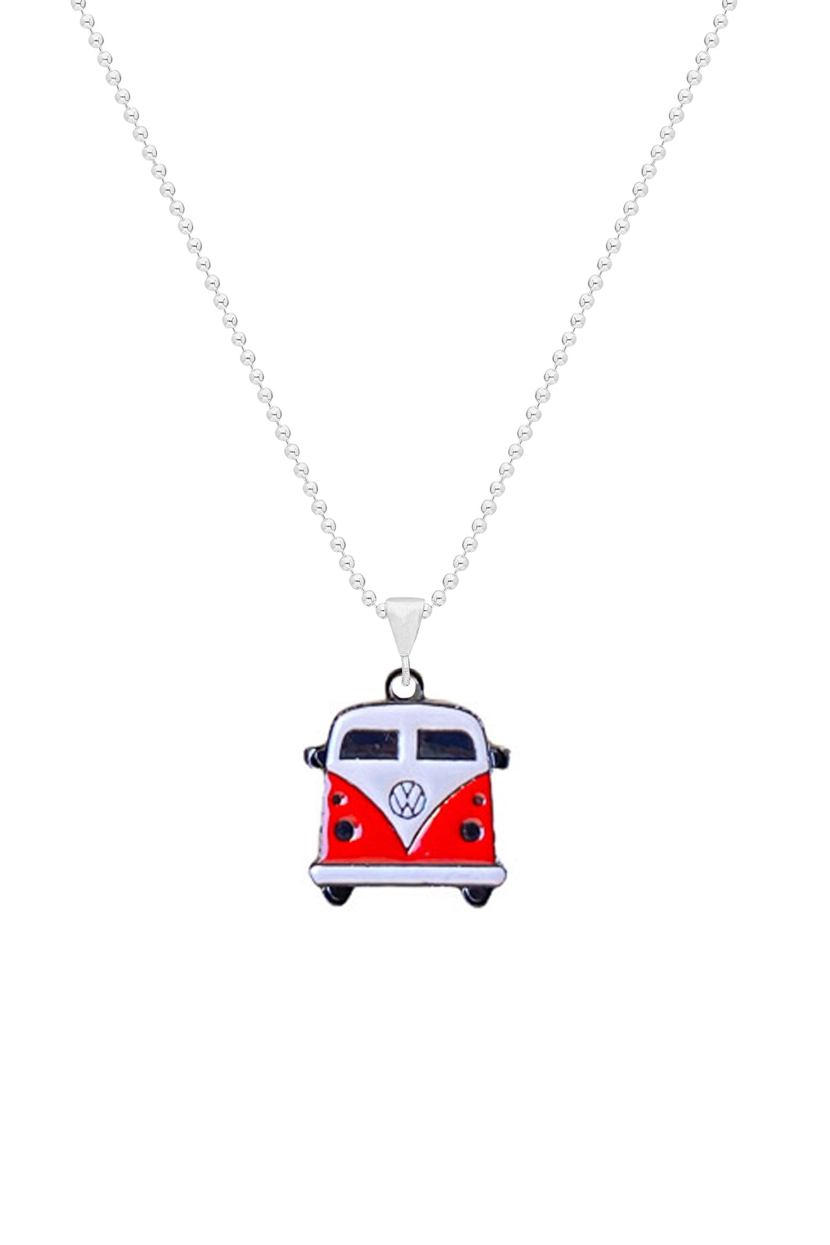 Metal üzeri mine karavan uçlu, 925 ayar gümüş zincirli kolye.